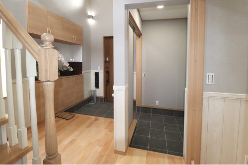 玄関の隣は靴のまま使えるシューズクロークがあります。